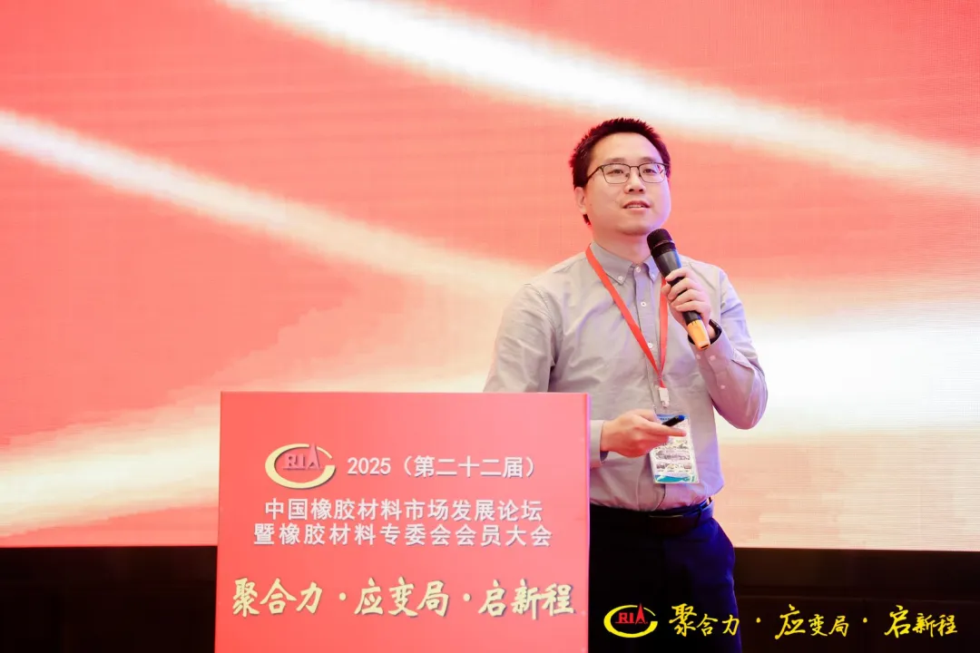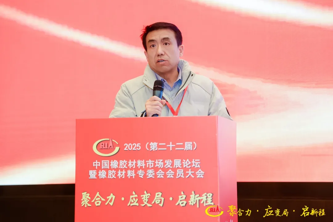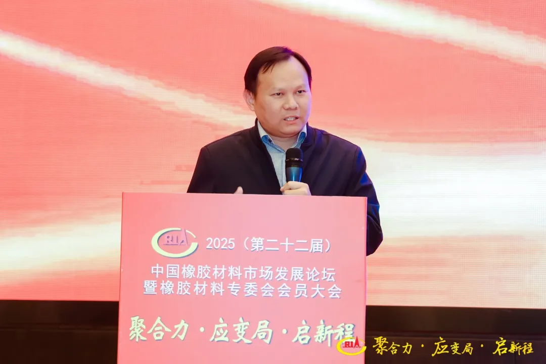 海南天然橡胶产业集团股份有限公司党委副书记、总经理杨宇通过视频发言,他表示,2023-2025年材料专委会搭建交流平台、调研国产胶产区、应对贸易壁垒、规范行业发展并完善服务体系,虽然行业面临地缘政治、胶价下跌等挑战,但为国产胶品质提升等注入动力。