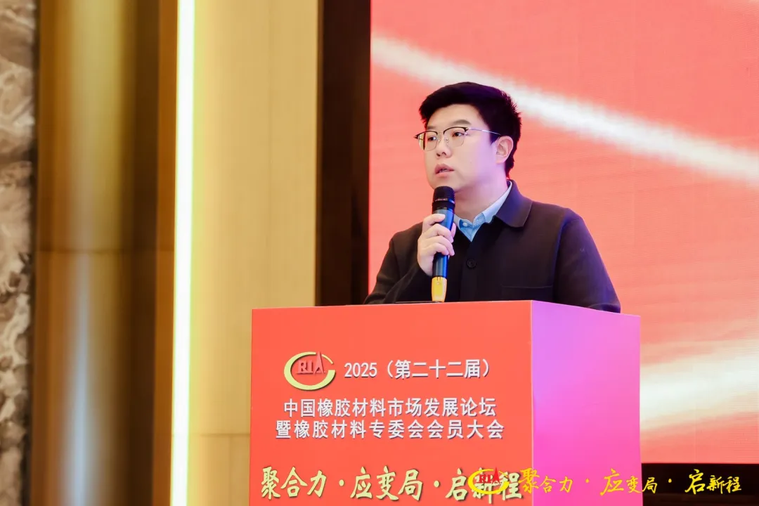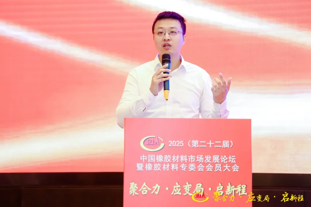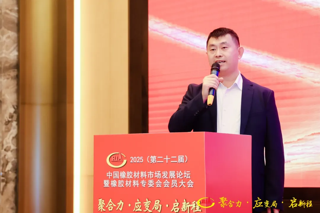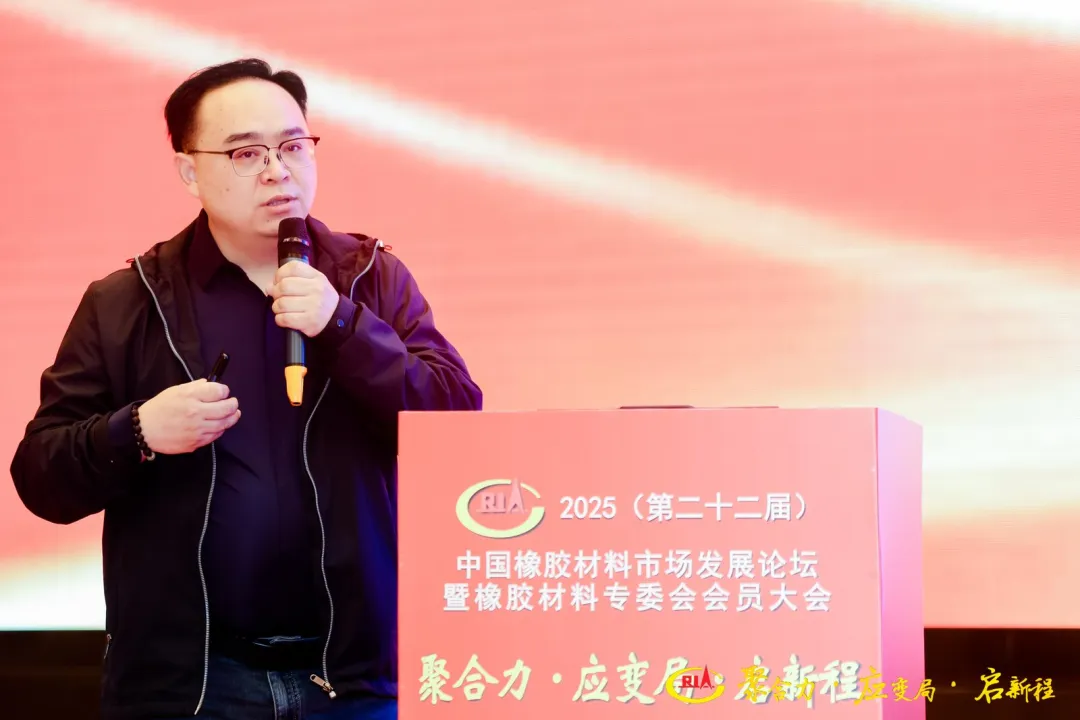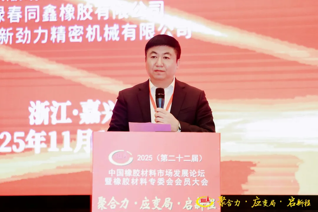 浙江信汇新材料股份有限公司董事长姜森结合嘉兴地域精神,为行业发展注入信心。他指出,当前橡胶行业面临美欧贸易壁垒、天然胶进口依赖高、合成胶利润挤压等挑战,但新能源汽车推动高性能橡胶需求上升、生物基材料开辟绿色转型路径、国内内需潜力持续释放,也为行业带来新机遇。
