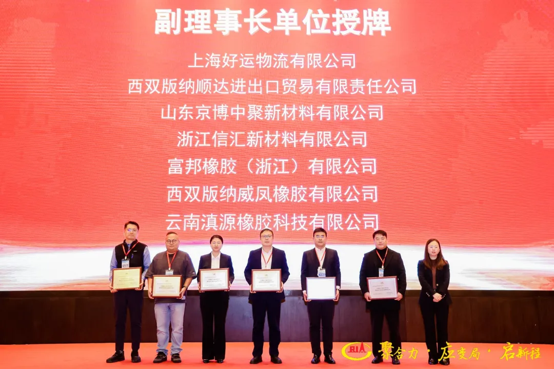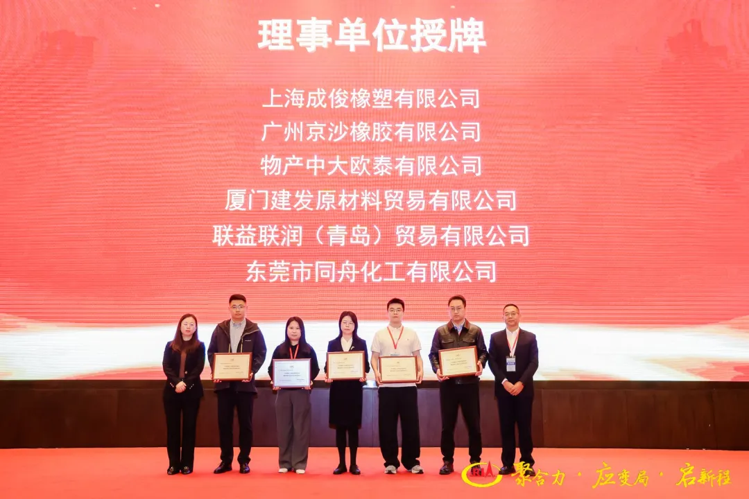 会上颁发橡胶材料专委会新一届理事长、副理事长、理事单位证书。